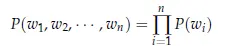 我们采用一元语言模型(Unigrams)方法,然后假设句子中的单词出现相互独立,那么概率可以写为: