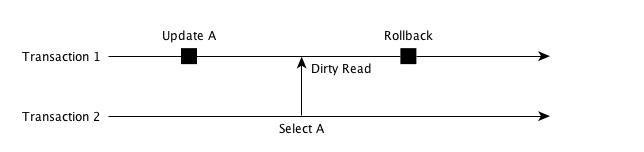 如上图所示,在 Transaction 2 查询时候,Transaction 1 未提交的数据就已经对外暴露。如果 Transaction 1 最后 Rollback 了,那么 Transaction 读取的数据就是错误的。