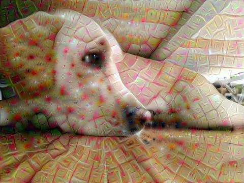 有没有感觉到特征的识别由浅入深的一步一步增强,也就是从edge,到shape,再到复杂的shape循序渐进的过程,试着感觉一下有没有慢慢一点点睁开眼睛的感觉,这里主要是把每层的特质放大进行夸张凸显