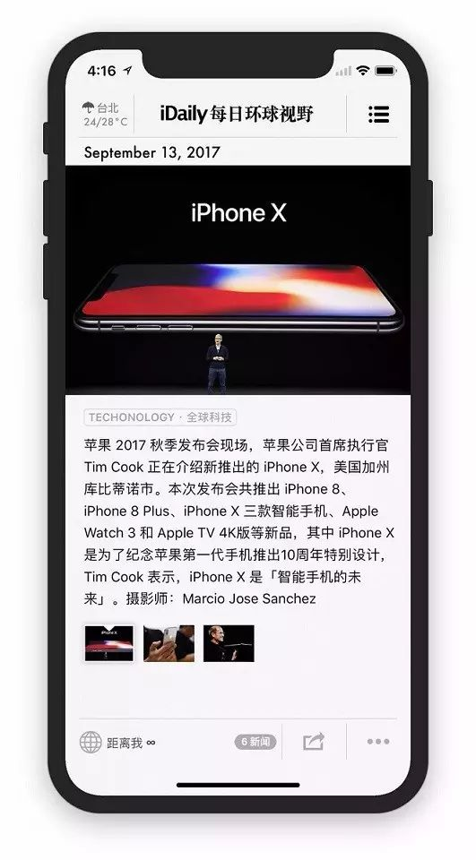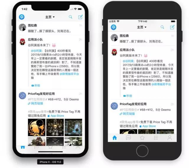 注意 StatusBar 的高度,iPhone X 的状态栏高度会更高,如果有开发者对 NavgationBar 的位置是通过固定值进行位置的定位的,建议升级 App。
