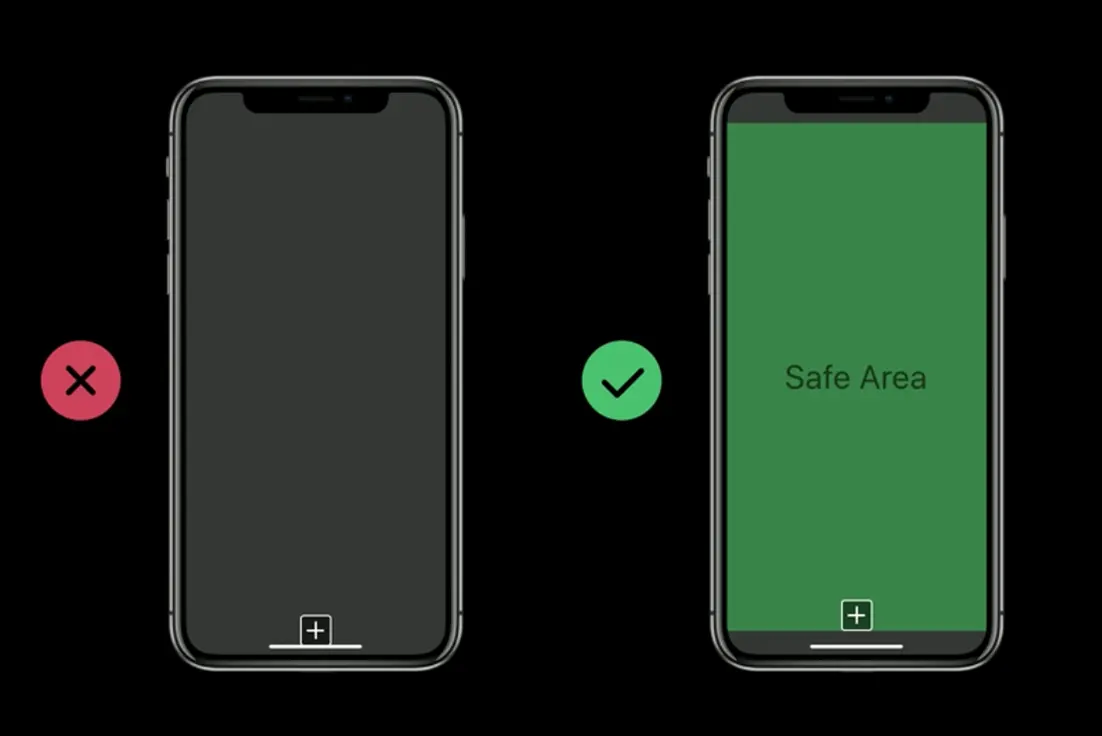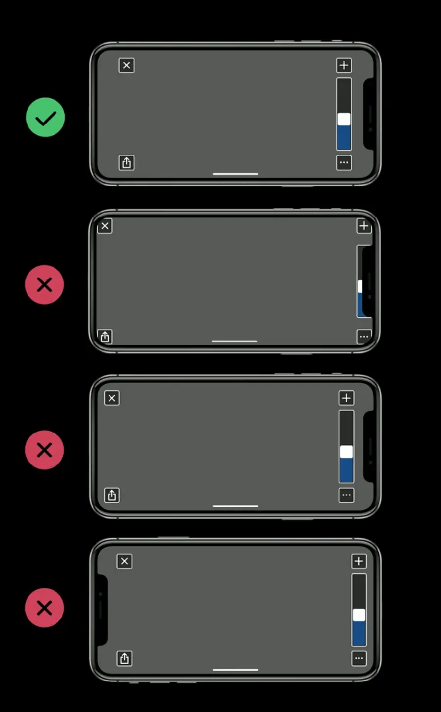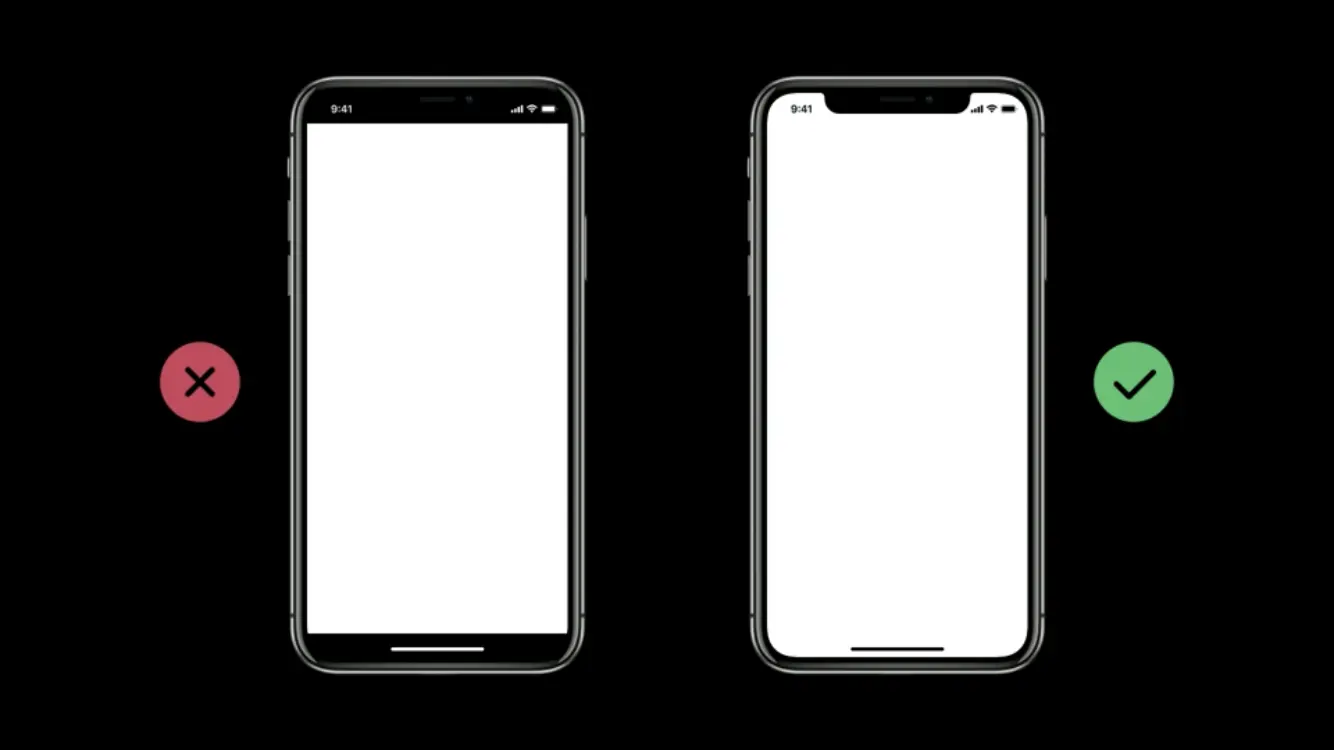 2-注意你的核心内容不要被设备的大圆角、传感器(齐刘海)、以及底部访问主屏幕的指示灯遮挡;