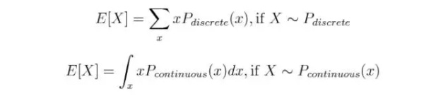 这两种分布类型在数学处理上有所不同:通常连续分布使用积分 ∫ 而离散分布使用求和Σ。以期望值为例: