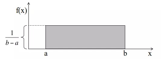 假设我们在从 a 到 b 的一段线段上等距地选择一个区间的概率是相等的,那么概率在整个区间 [a,b] 上是均匀分布的,概率密度函数也不会随着变量的更改而更改。均匀分布和伯努利分布不同,随机变量的取值都是等概率的,因此概率密度就可以表达为区间长度分之一,如果我们取随机变量一半的可能值,那么其出现的概率就为 1/2。