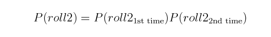 但是为什么这个公式可行?首先,我们将第一次投掷和第二次投掷的事件重命名为 A 和 B,以消除语义影响,然后将我们看到的两次投掷的的联合概率明确地重写为两次投掷的单独概率乘积: