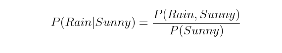 换句话说,我们用 Rain 且 Sunny 的概率除以 Sunny 的概率。