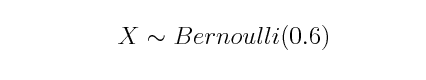 上式表示随机变量 X 服从成功率(正面向上)为 0.6 的伯努利分布。