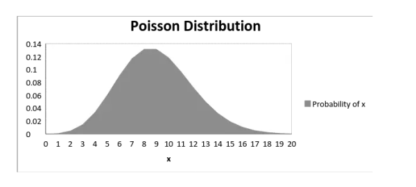 如上所示,当均值增加时,曲线向右移动。泊松分布的均值和方差为: