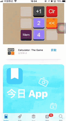 全新的App Store更加重视游戏应用,把底部导航栏分为“今日”、“游戏”、“应用”、“更新”和“搜索”。 “今日”每天介绍一款应用和游戏,同时还包含编辑推荐的应用、对开发者的采访、应用教程等内容。单个应用页面也有所更新,更突出用户评价,允许开发者突显新的应用内购买和关卡等信息。另外,开发者请求用户评价的次数也有了限制,用户可以在设置中关闭评论等。