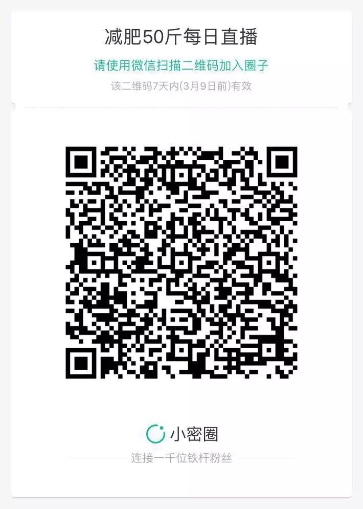 最近在减肥,就顺便玩了下小密圈,大家对减肥的话题感兴趣的话,可以保存下方的图片扫描进入我的减肥小密圈。