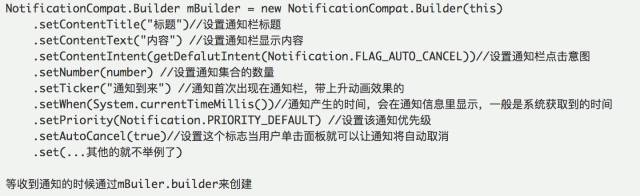 还有就是我们常用的通知,由于通知中会有很多的内容,通过建造者模式可以很方便的来展示需要展示的内容。