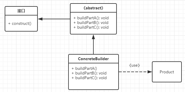 好了这就是变种Builder模式,在Android开发比较常用,通常作为配置类的构建器将配置的构建和表示分离,也就是王者荣耀中的各种技能、特效等,将他们从目标类中隔离出来避免过多的setter方法。通过链式实现使得代码更简洁、易懂。缺点呢就是会产生多余的Builder对象消耗内存,不过这个缺点可以被他的优点所弥补。变种的Builder模式是根据经典的Builder模式在日常开发中的需要延伸出来的一种方式,经典Builder模式UML如下: