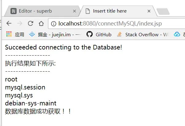 4.3、附上JavaWeb连接代码,写在servlet一样(改IP账户密码就行)