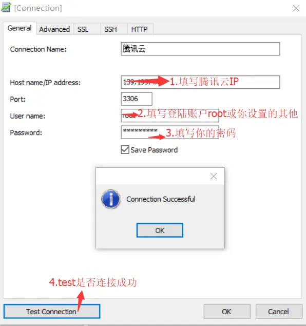 String url = "jdbc:mysql://填写你的腾讯云IP:3306/mysql";