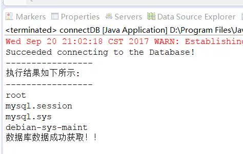 System.out.println("数据库数据成功获取!!");