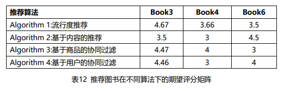 由可知,混合推荐算法将为用户顺次推荐Book3,Book6,Book4。