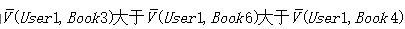 从表2 用户对图书的评价矩阵可知,可以将用户行为看着是对Book1,Book2, Book3,Book4,Book5, Book6的评价的向量。
