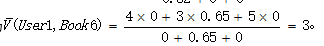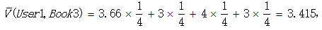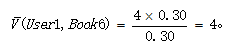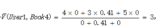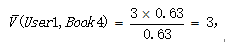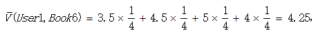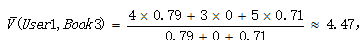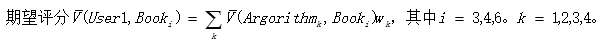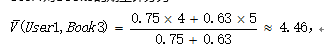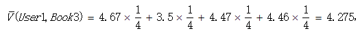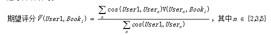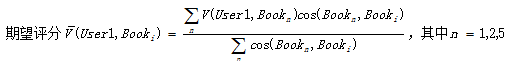 然后按下面公式计算User1还没有购买过的相似图书的期望评分,推荐给用户期望评分最高的两本图书即可。