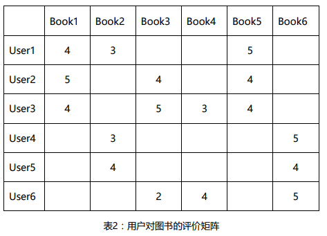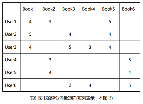 这些用户曾经部分购买过这6本图书并且进行了评价(注:评分函数记为),如下表2:(其中,用户对一本图书的喜好程度越高,对其评价越高。最低评分1分,最高评分5分)。
