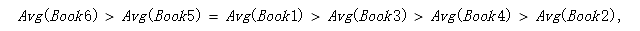 由此有了流行指标的排序,便可以对用户进行推荐了。以对User1进行推荐为例,将User1已经购买过得图书(Book1,Book2,Book5)从流行指标有序列表中剔除,就得到了对User1的实际推荐列表: