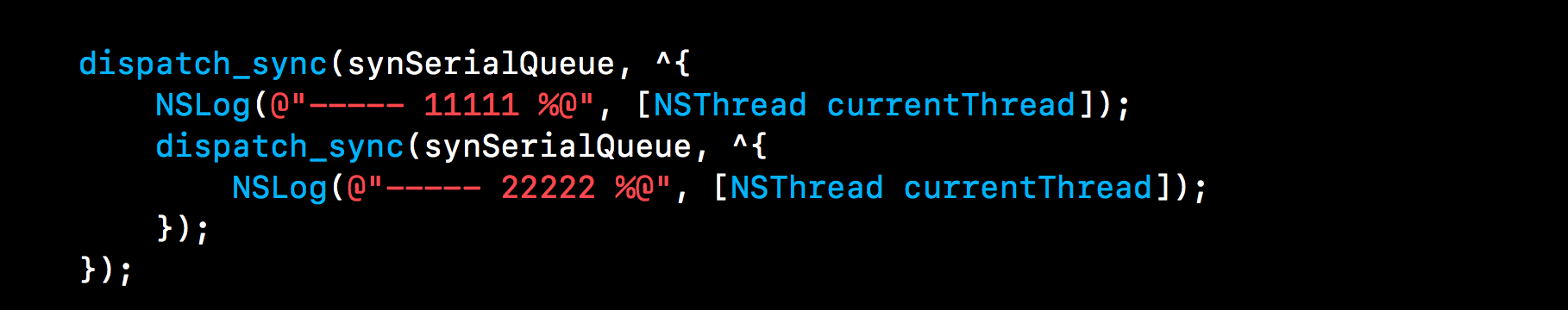 注意:对于同步提交的target队列,如果是嵌套提交的话synSerialQueue一定不要包含synSerialQueue,否则导致程序崩溃。