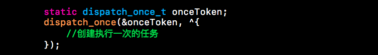 在程序运行期间只执行一次,一定要确保onceToken变量为static否则会多次执行,一般用于单利创建。