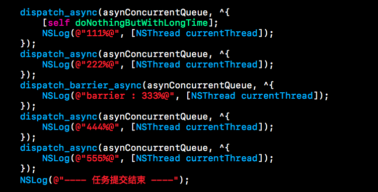 注意:如果为非ARC在不需要使用时需要调用dispatch_release()释放对象,ARC不需要。