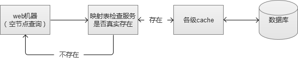 当我们搭建完前面所说的全部服务,认为Web系统已经很强的时候。我们还是那句话,新的问题还是会来的。空节点查询,是指那些数据库中根本不存在的数据请求。例如,我请求查询一个不存在人员信息,系统会从各级缓存逐级查找,最后查到到数据库本身,然后才得出查找不到的结论,返回给前端。因为各级cache对它无效,这个请求是非常消耗系统资源的,而如果大量的空节点查询,是可以冲击到系统服务的。