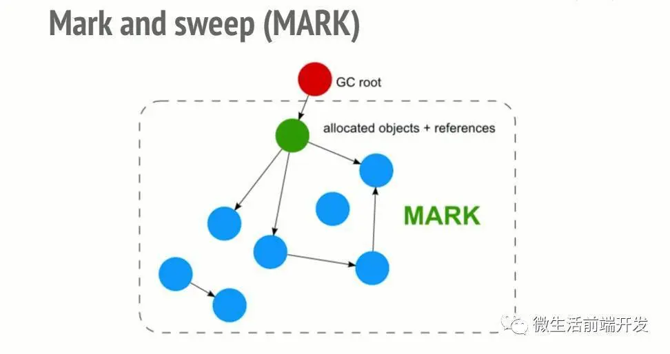 垃圾回收器会创建一个列表,用来保存根元素,通常指的是代码中引用到的全局变量。在JS中,’window’对象通常被作为一个根元素。