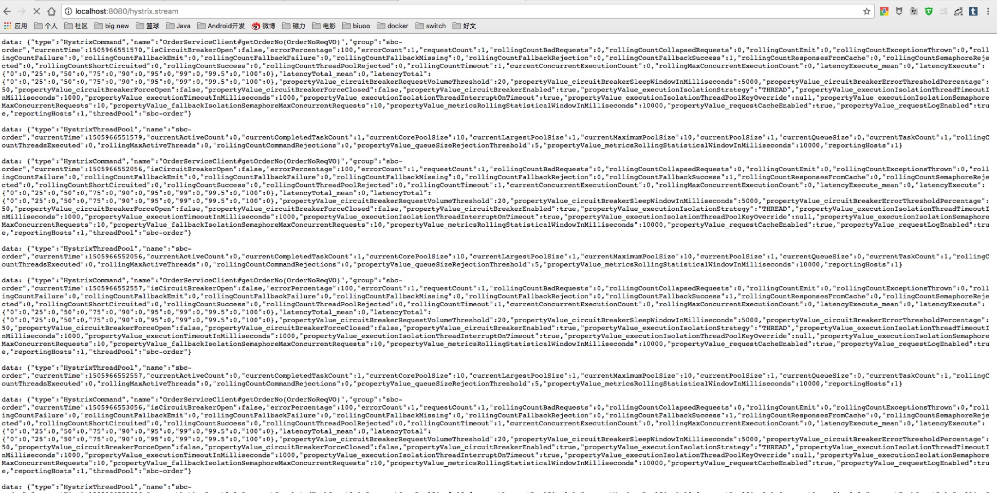 将该应用启动访问http://ip:port/hystrix.stream: