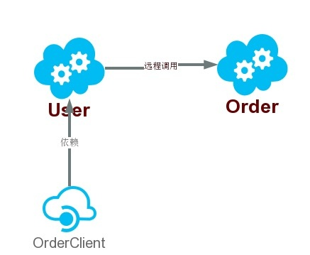 User应用通过Order提供出来的order-client依赖调用了Order中的创建订单服务。