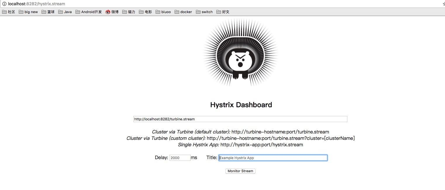 由于我们的turbine和Dashboard是一个应用所以输入http://localhost:8282/turbine.stream即可。
