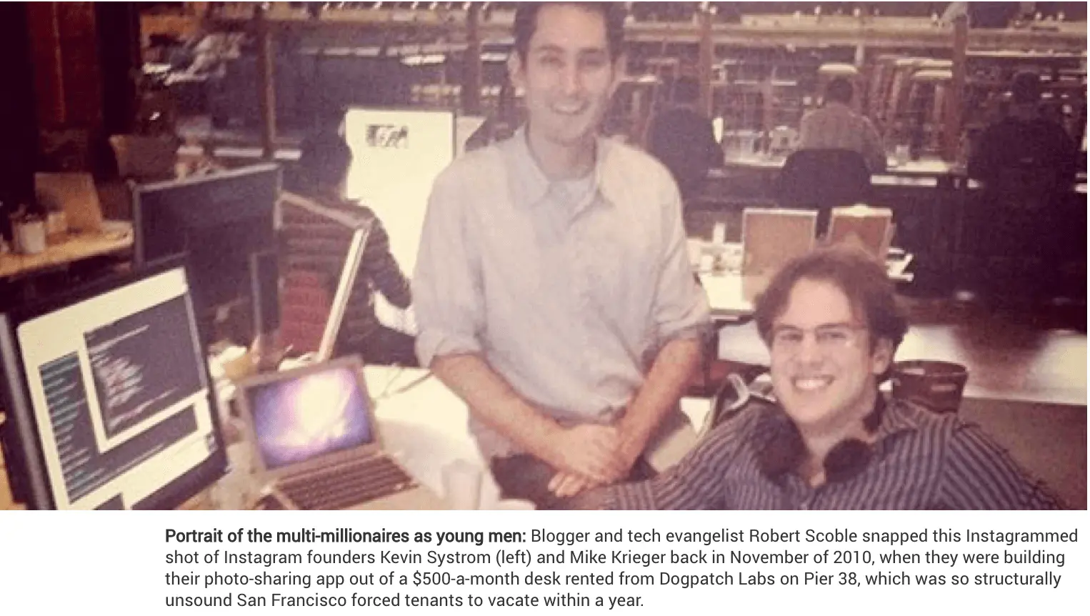 Instagram 没成功的话,Kevin Systrom 这人就是彻底大悲催,错过了三次发财致富的机会。第一次,他在 Facebook 刚搬到 Palo Alto 的第一天就与 Mark Zuckerberg 结识,Zuckerberg 劝他辍学加入,他拒绝;第二次,在 Odeo 实习结束后不想留下而去 Google 上班,Odeo 后来做了个叫 Twitter 的产品;第三次,离开 Google 后,加入 Nextstop,呆了一年出来自己创业,他离开半年后这家公司被 Facebook 收购了,(按普通人的思路看)要再多待几年拿完股票就好了。