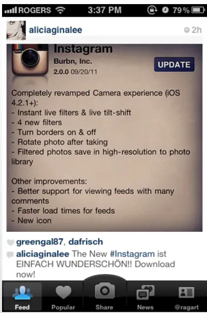 9月,月活跃用户达到 1 千万;上线 Instagram 2.0 iOS 版本