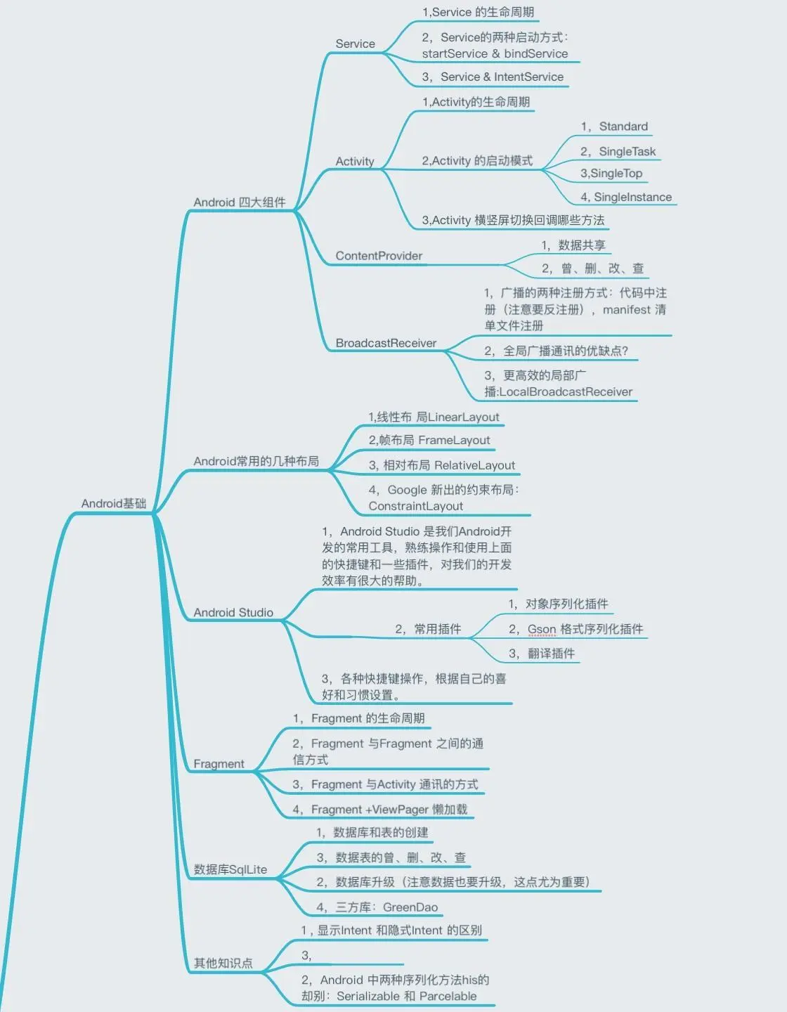 前面写了文章《Android开发者该如何进阶?》,整理了Android开发中的一些知识点,包括Java基础、Android基础、Android进阶、开源框架和工具类库等几个大的方面。罗列了其中的包含的知识点,文章有点长,覆盖了Android 知识面较广,为了将各个知识点梳理得更清楚和直观,因此将所有知识点整理成了一张思维导图,方便大家查看。