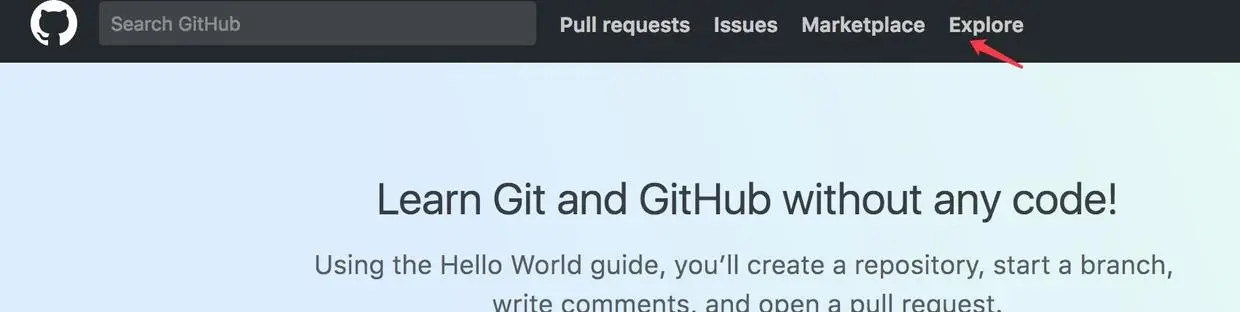 1,Github 首页右上角有一个Explore 菜单,如下: