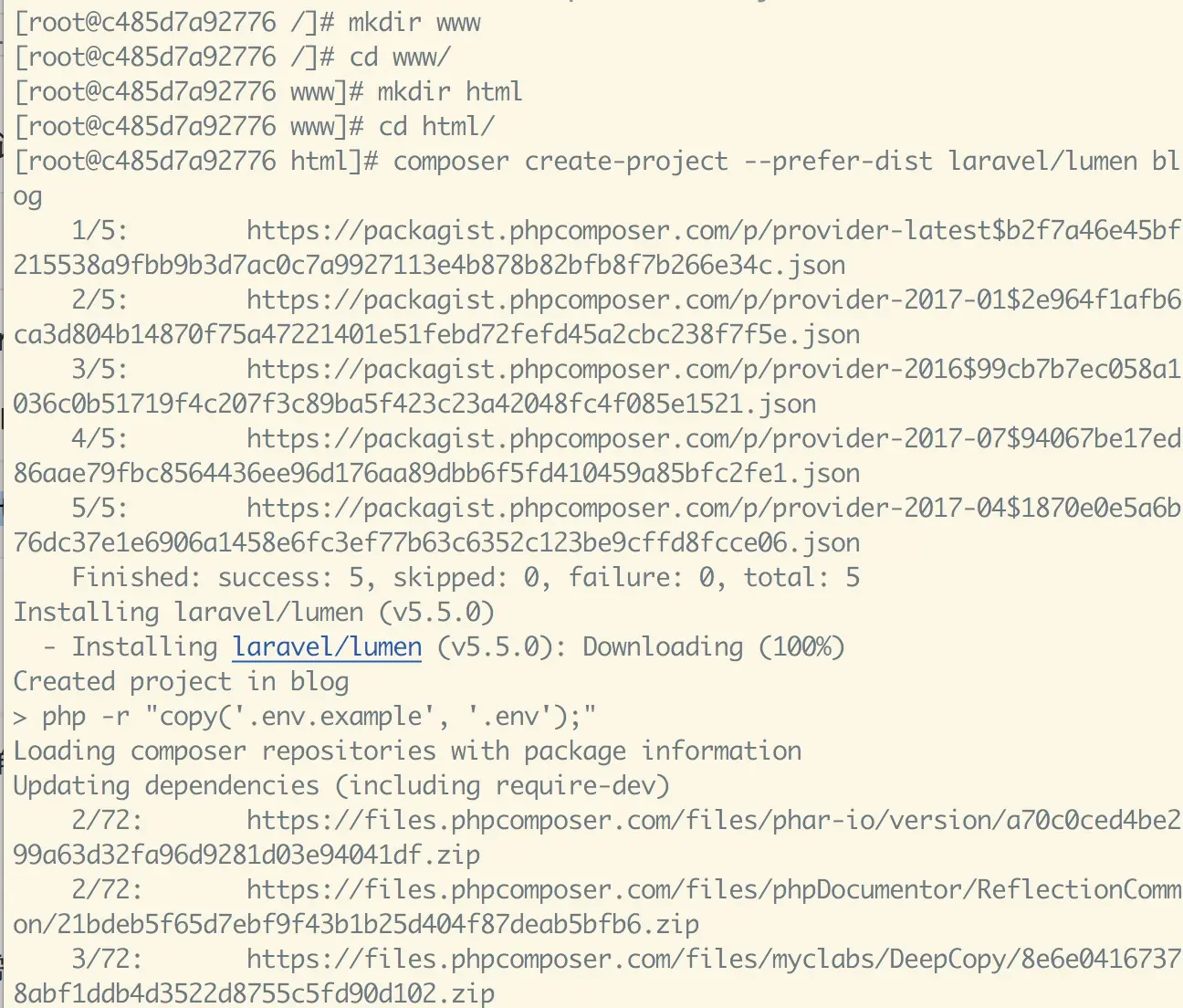 现在基础的工具和环境已经有了,那我们开始试试效果,安装一个 Lumen 项目试试: