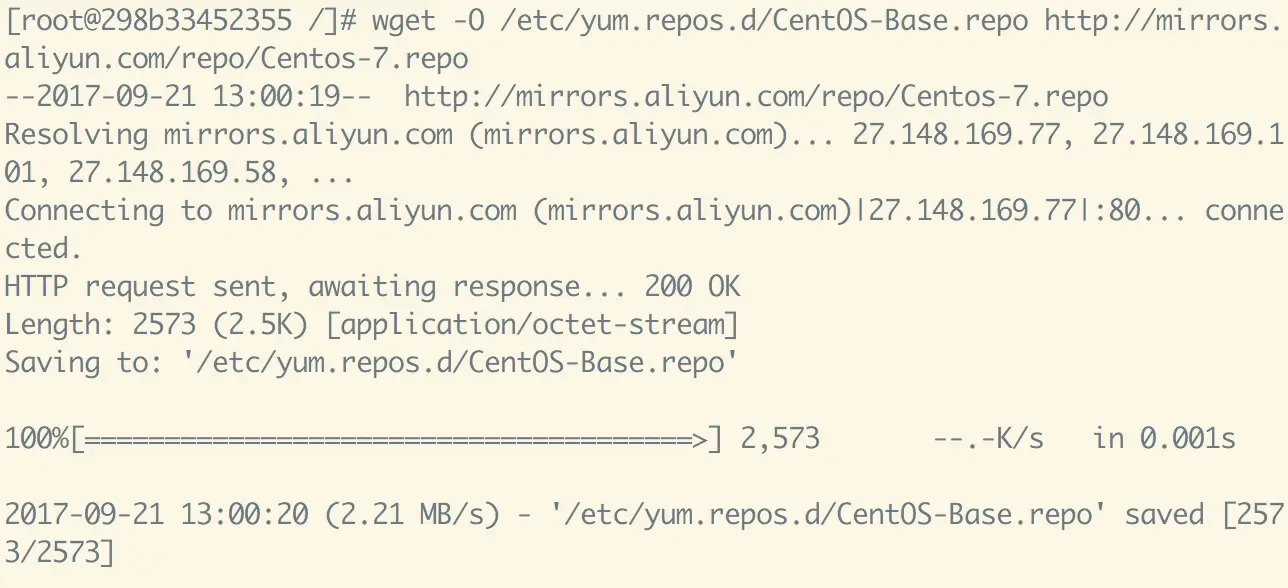 wget -O /etc/yum.repos.d/CentOS-Base.repo http://mirrors.aliyun.com/repo/Centos-7.repoyum clean all