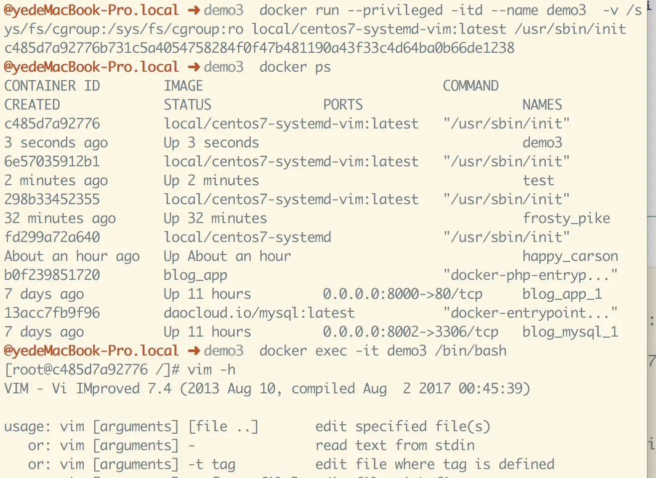 docker run -d -v /sys/fs/cgroup:/sys/fs/cgroup:ro local/centos7-systemd运行容器: