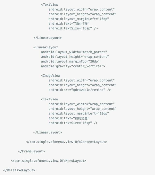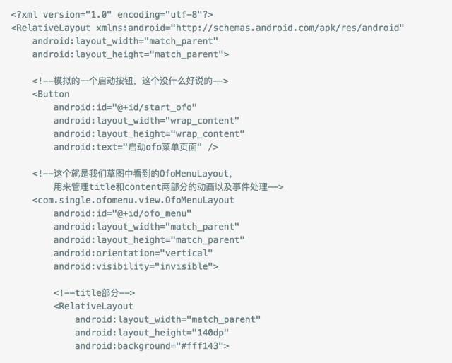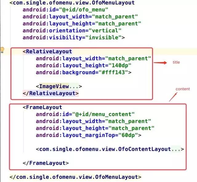 从草图整体来看,最外层是包裹了OfoMenuLayout,它是专门来管理我们的title和content部分,不难理解它里面就两个直接的孩子: