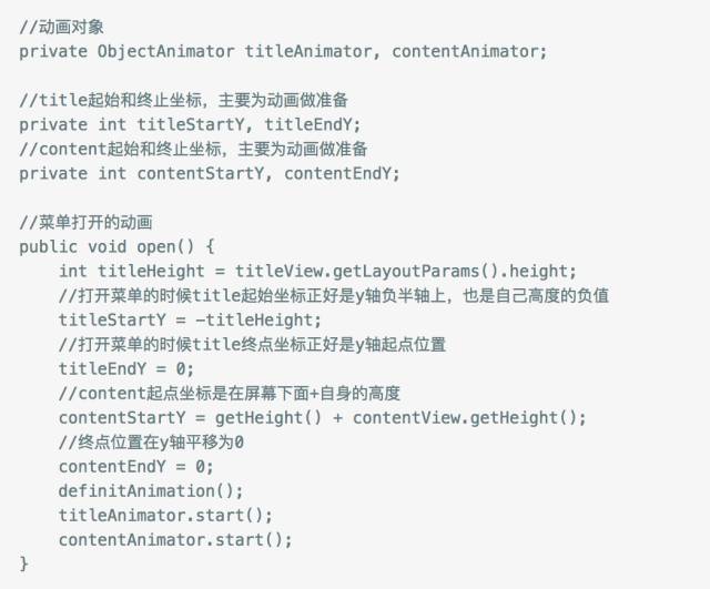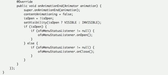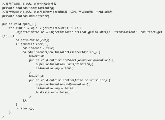 上面的打开和关闭的动画,其实就是调换了起始坐标,好了动画就是这么简单啊,需要主要在动画期间是不允许事件分发的,需要处理事件分发部分。