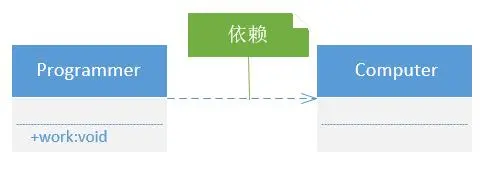 指类与类之间的联接,依赖关系表示一个类依赖于另一个类的定义。一般而言,依赖关系在Java语言中体现为局域变量、方法的形参,或者对静态方法的调用。