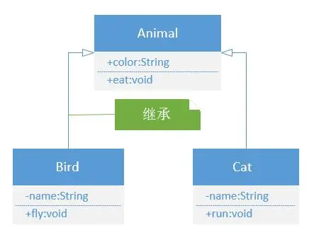 继承是面向对象语言的三个特性之一。子类继承父类,子类可以使用父类所有非私有的属性和方法,其UML类图表示如下: