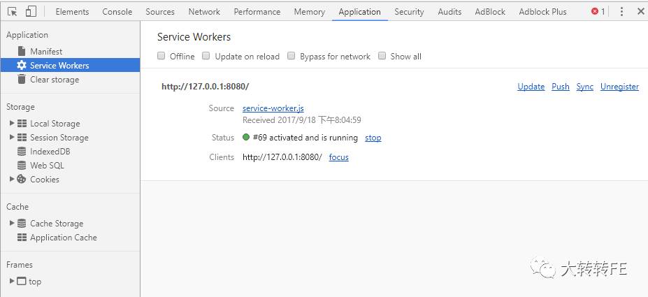注意: 1.Service workers运行在其他线程,完全异步,同步API不能在其中使用 2.大量使用Promise