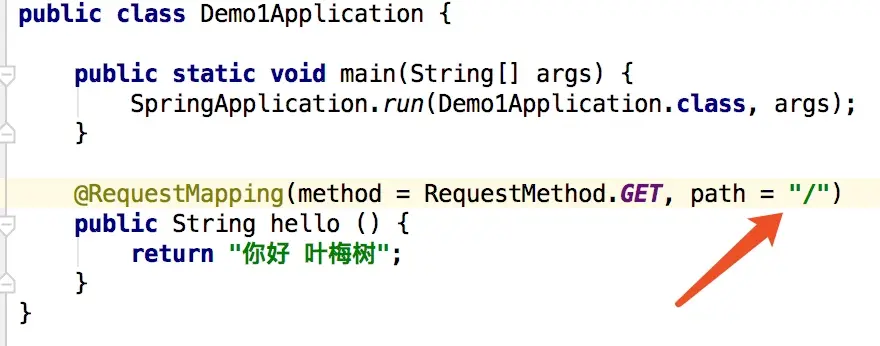 node app.js我们修改上一篇写的 Spring Boot 应用,让访问 http://localhost:8080/ 可以直接访回「你好 叶梅树」。
