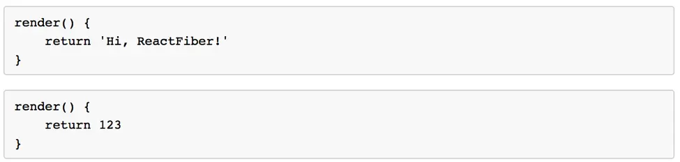 其次,render方法中返回的不再是一个被div元素包一层的组件列表,而是直接返回一个组件列表,这是React在新版中提供的新的写法。除此之外,可以直接返回字符串和数字。像下面: