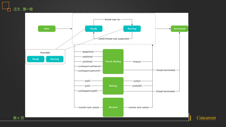 线程进入RUNNABLE运行态一般分为五种情况: