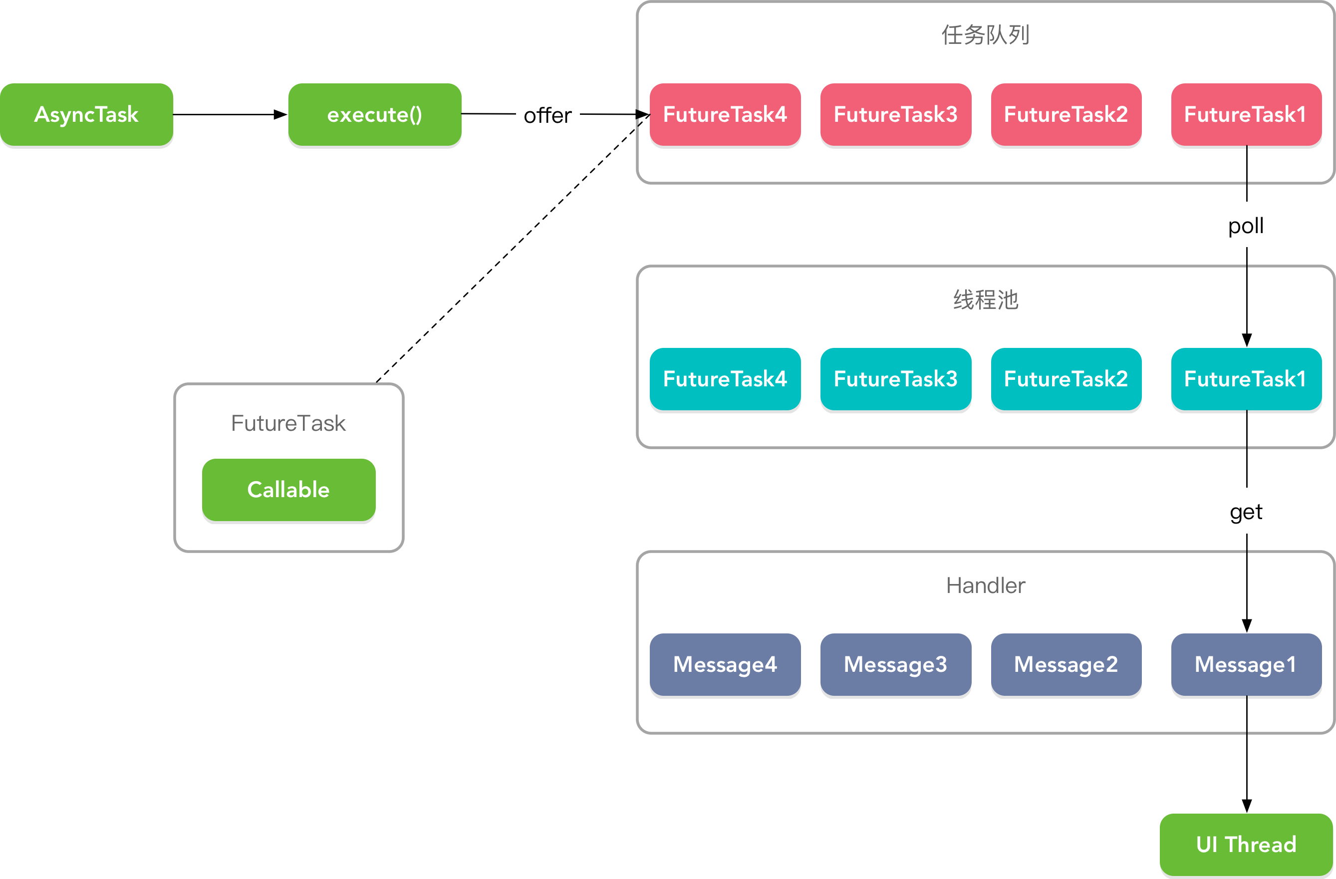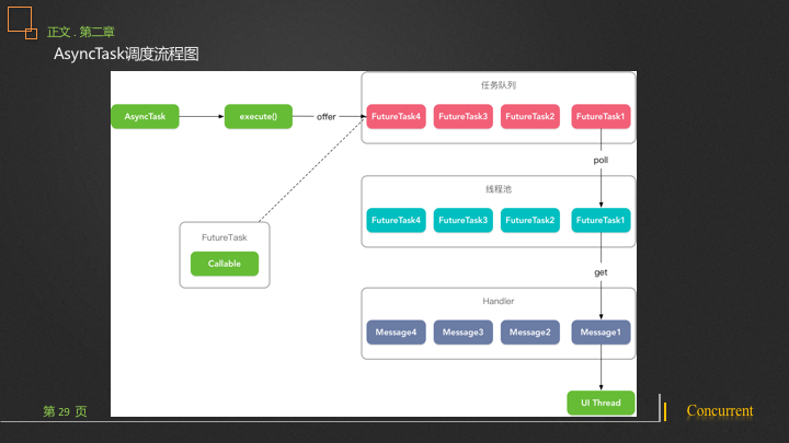 }所以我们没调用一次AsyncTask.execute()方法就将FutureTask对象添加到队列尾部,然后会从队列头部取出任务放入线程池中执行,所以你可以看着这是一个串行执行器。