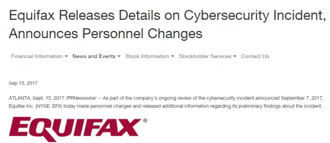 【数据泄露】Equifax发生大规模数据泄露后 两名负责信息和安全的高管宣布离职