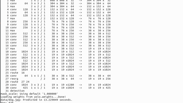 ./darknet detect cfg/yolo.cfg yolo.weights data/dog.jpg