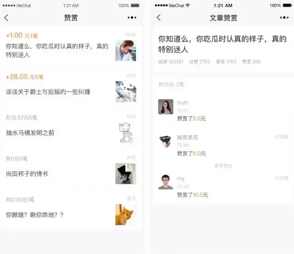 开通了赞赏功能的公众号,可查看每篇文章的赞赏,回复赞赏的用户。